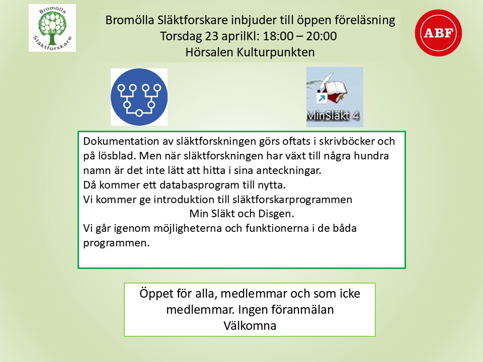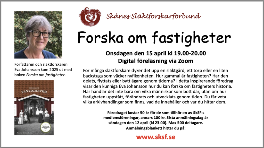 Onsdag den 11 mars kan boka in er på en föreläsning från Skånes Släktforskarförbund. Anmälan på denna länk https://forms.gle/aEPFLV8fNXshxyot8